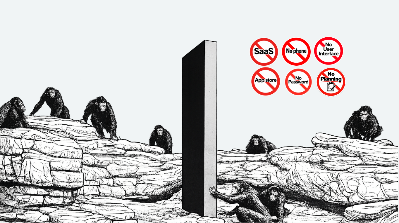 This is a fundamental departure from how technology has been built and delivered for the past five decades. Today’s applications arise from months or years of experimentation in search of product:market fit and are designed once and distributed to millions. They are static architectures wrapped around general assumptions about users, configured marginally at the edges. In this world of ephemeral experiences, there is no need nor space for planning; for passwords; for SaaS, for app stores, or even for mobile devices as we know them. All devices will collaborate continuously to deliver what is needed with the minimum possible conscious human involvement. This dislocation will reverberate back up the innovation cycle as an industry adjusts from today’s assiduous hunt for product:market fit to a new role overseeing AI agents as they swarm together around a new goal: ‘product:moment’ fit.