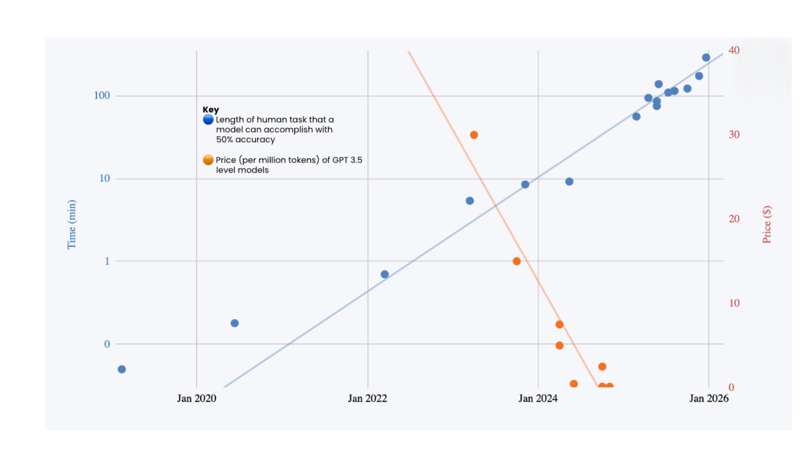 Large Language Models. We discovered that if you feed enough data through enough parameters, general-purpose reasoning emerges. This was not engineered top-down; it was discovered. GPT-2 couldn't finish a sentence. GPT-4 passed the bar. That was two years. Today, the frontier has moved somewhere stranger still. The hard ceiling of human intelligence — the Einstein, Hawking, Copernicus ceiling — is an IQ of around 160. Current frontier models have broadly surpassed it. Claude Opus 4.5 delivers consistent performance through 30-minute autonomous coding sessions, achieving 80.9% on SWE-bench and resolving four in five real production bugs without human involvement (without sleep). Google DeepMind's Gemini Deep Think achieved gold-medal standard at IMO 2025 solving five of six problems in algebra, combinatorics, geometry, and number theory within the competition time limit — working entirely in natural language. GPT-5.2 outperforms industry professionals across 44 occupations at over 11x the speed and under 1% of the cost. Grok 4 Heavy is the first model to score 50% on Humanity's Last Exam, a benchmark designed to be the final closed-ended academic benchmark of its kind. . All these benchmark achievements were viewed as implausible in 2020. These foundation models are a new kind of artefact: trained intelligence that can be copied, composed, and deployed anywhere, with inference-time marginal costs plummeting to near zero. This is before hard-coded specialised inference silicon. Agents and physical embodiment add action to this insight, closing the loop for further self-refinement of their capabilities.